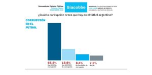 Sobre el fútbol argentino, el 65,8% de los encuestados asegura que hay “mucha corrupción”, mientras que apenas el 8,4% considera que no hay ninguna.