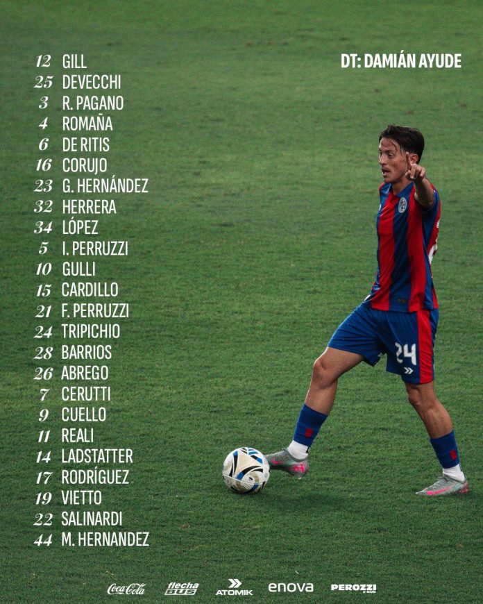 San Lorenzo: Orlando Gill; Ezequiel Herrera, Jhohan Romaña, Gastón Hernández, Mathias De Ritis; Ezequiel Cerutti, Ignacio Perruzzi, Nicolás Tripichio, Agustín Ladstatter; Luciano Vietto y Alexis Cuello. DT: Damián Ayude.