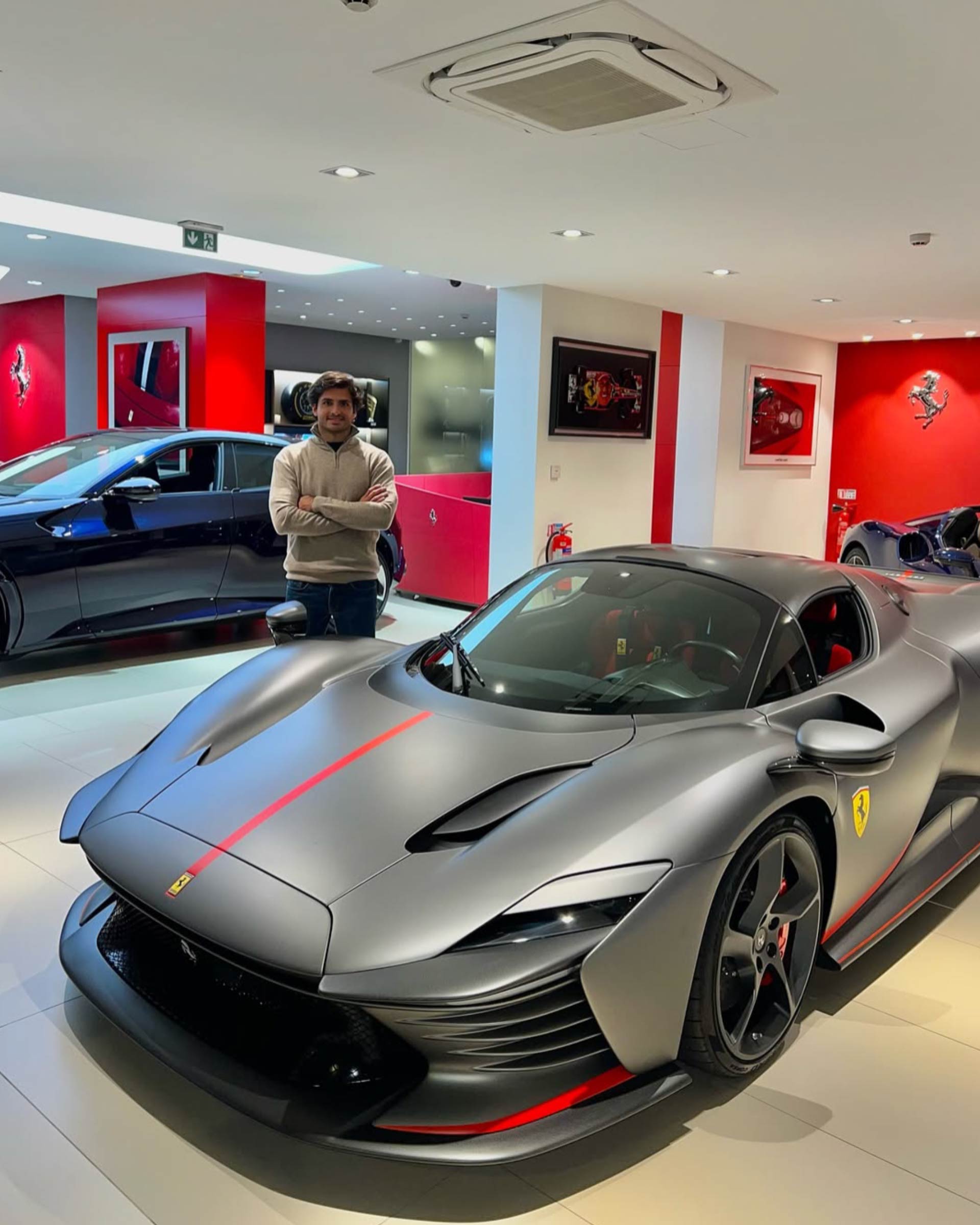 Sainz expresó que actualmente posee cuatro autos de Ferrari de edición limitada, pero su colección se agrandará dentro de un año y medio, cuando le entreguen el quinto modelo. Dentro de su exclusivo garage se encuentran el Ferrari 812 Competizione (se lo dio la escudería a modo de despedida cuando pasó a Williams), Daytona SP3 y el SF 90.