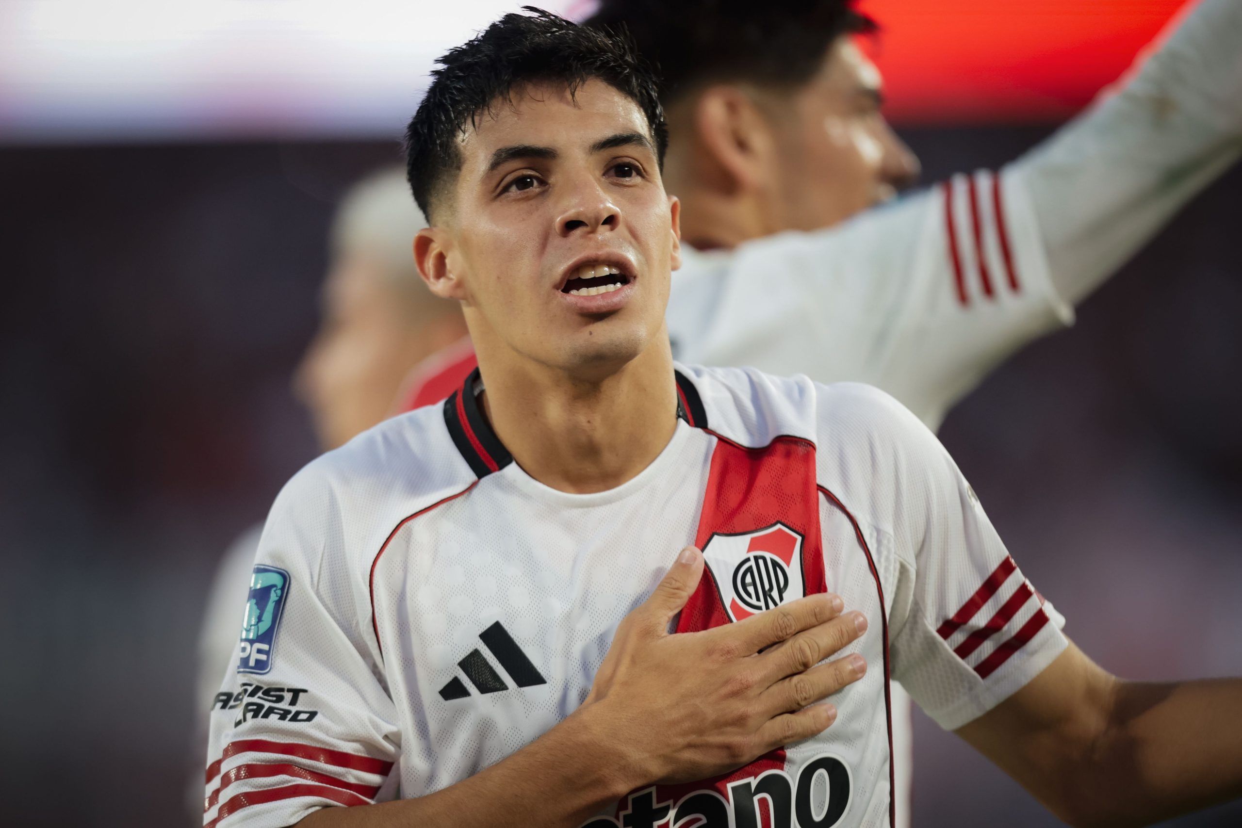 El autor del primer tanto, nacido en El Talar, tuvo su estreno en la máxima categoría en el Superclásico frente a Boca Juniors en los cuartos de final de la Copa de la Liga Profesional 2021. Aquel encuentro quedó en la memoria por haberse jugado con varios juveniles, tras un brote de coronavirus que afectó al plantel Millonario.