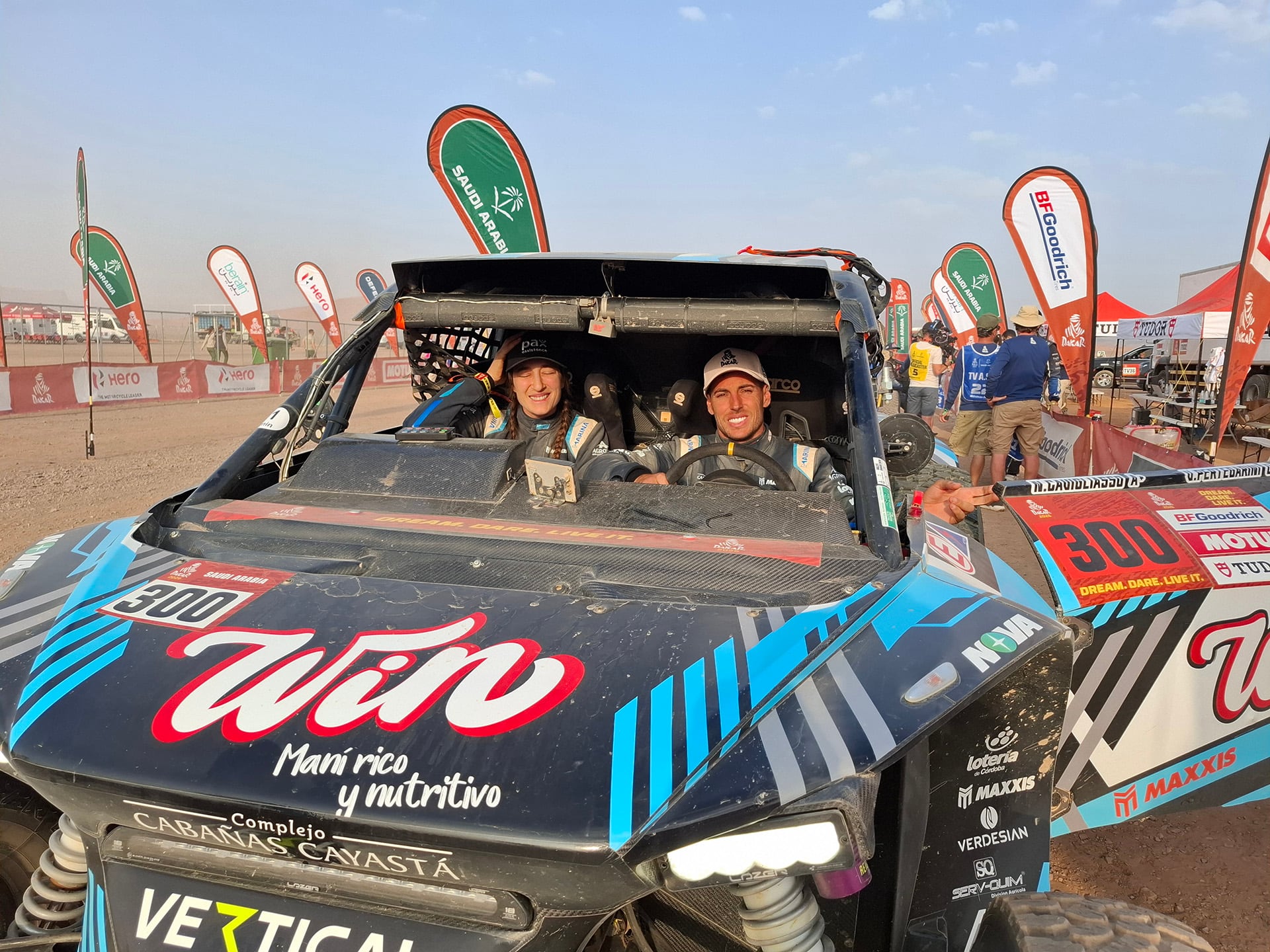 Aparecieron los actuales campeones del Rally Dakar y del mundo en la categoría Challenger (Prototipos de UTV), Nicolás Cavigliasso y Valentina Pertegarini. El matrimonio cordobés se impuso con su Taurus EVO Max de la escudería Vertical y superaron al español Pau Navarro y la local Dania Akel, que corren con la misma marca, pero el modelo T3 Max. La pareja de General Cabrera ahora es tercera en la clasificación global y quedó a 6.45 minutos del líder, el saudita Seidan Yasir (Taurus). La mala noticia fue el retraso por fallas mecánicas (sería en el motor o en el turbo) en el Taurus navegado por el bonaerense Augusto Sanz y conducido por la neerlandesa Puck Klaasen (GRally Team): hoy fueron 26º y cayeron al puesto 18º en la general.