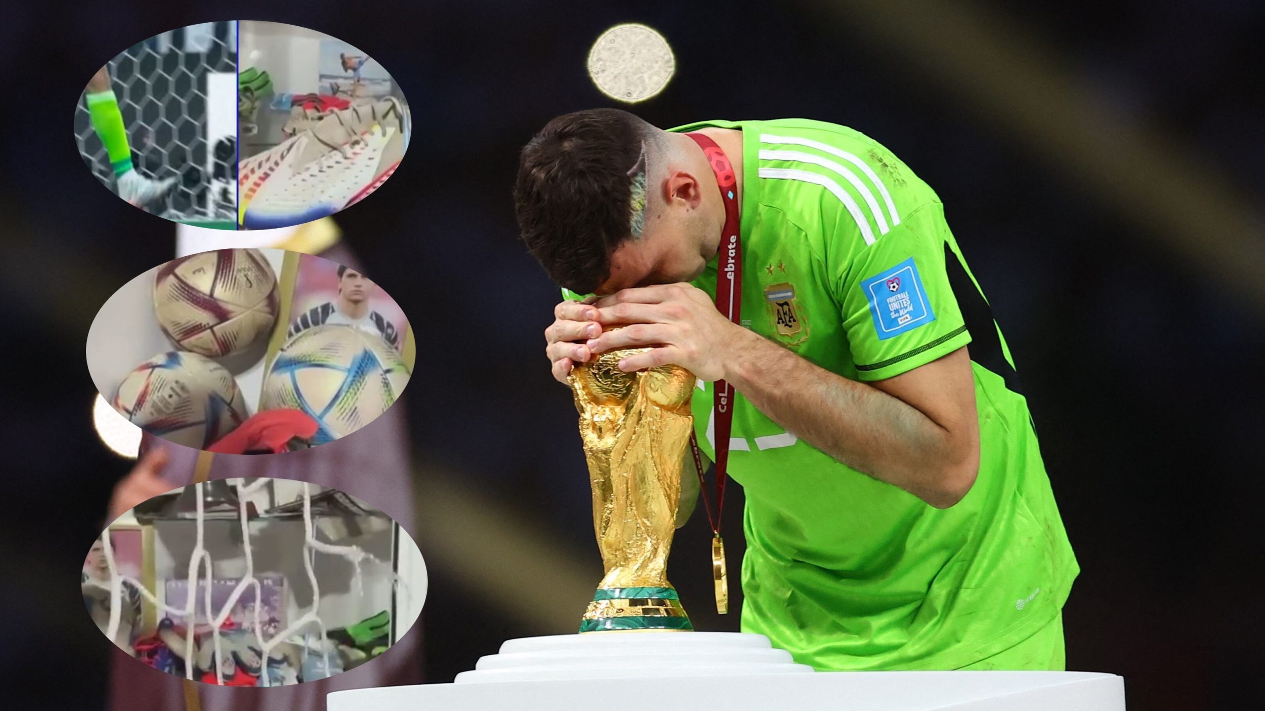En un momento de la entrevista, el padre del Dibu Martínez mostró el impactante museo que tiene en su casa en Mar del Plata. Contó que tiene los guantes y los botines de la final ante Francia. “Esto es único, eh, todo lo que tengo es de Dibu: la pelota del Mundial, el trofeo de mejor arquero del mundo, una foto con la Copa América, los botines de la final, tengo todos los guantes de Emi, todas las camisetas donde jugó, la red de Lusail de la final con Francia, del arco de la atajada, pobrecito no jugaba en ningún lugar y tengo todas las camisetas de él. La vez pasada me dijo ‘¿vos todavía tenés esas camisetas?’ y era al único que le daba la camiseta, a papá“, contó orgulloso. Y cerró: “Nadie conocía esta parte de mi casa, ahora la conoce todo el mundo, jeje”.