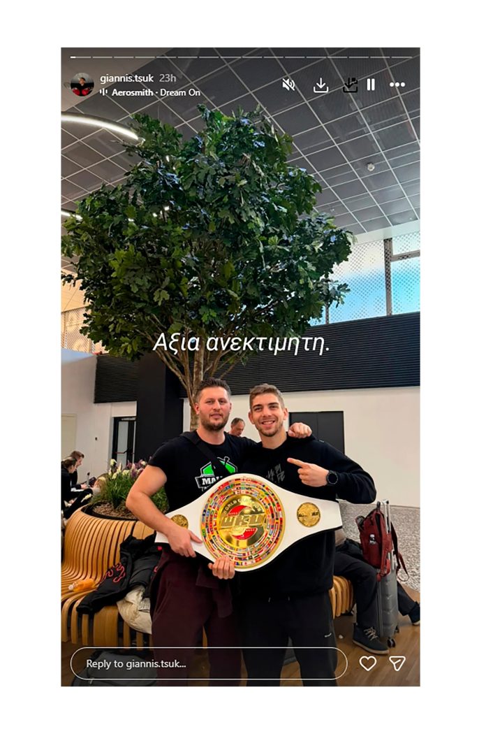 “Giannis Tsoukalas, como se ve en el vídeo, hizo una reverencia y se arrodilló para mostrar respeto a los matones de su oponente y al propio oponente para evitar cualquier incidente, ya que el ambiente ya era tenso”, describió Kochliaridis.