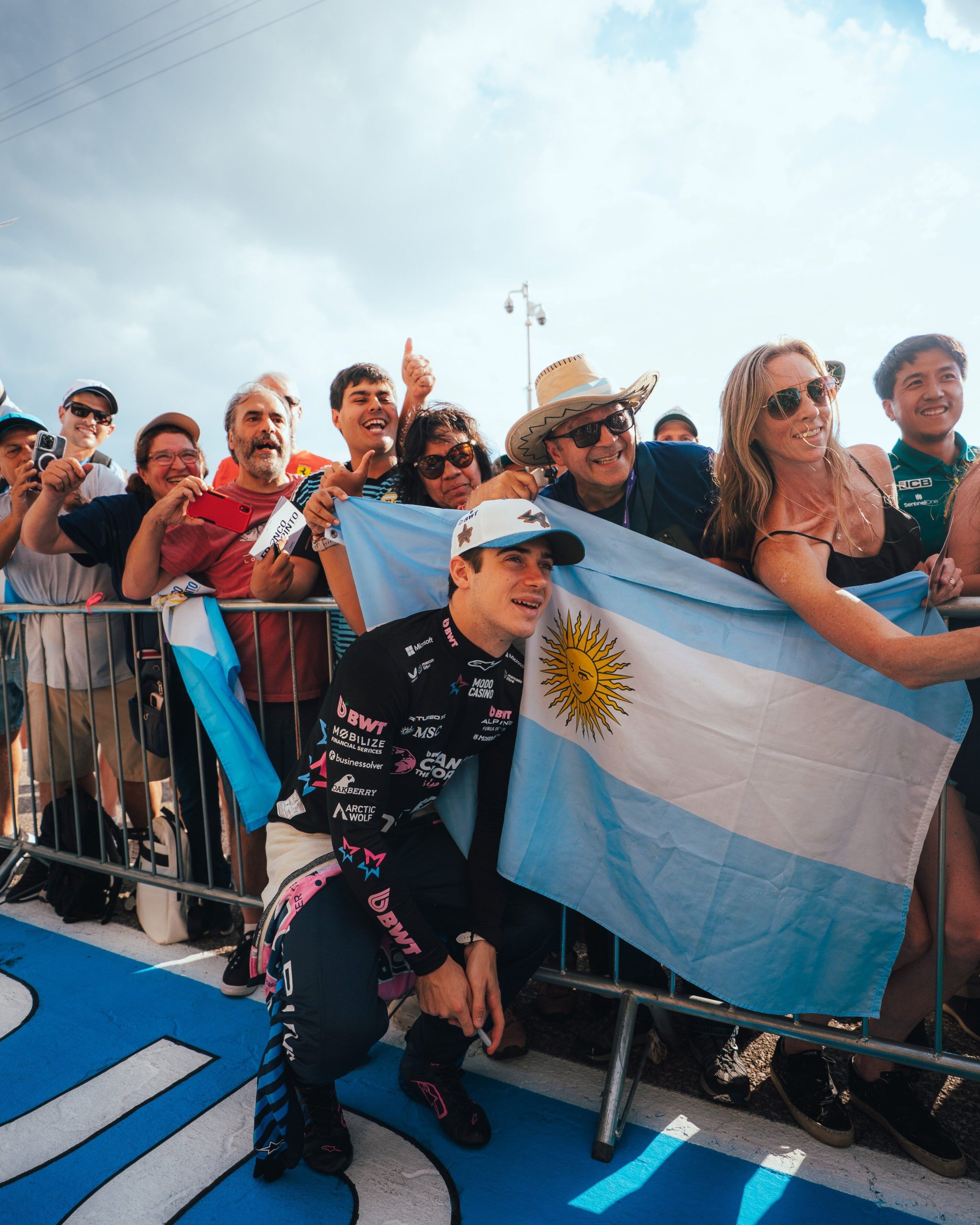 Una postal repetida en varios circuitos donde corre la F1: Franco Colapinto rodeado de argentinos, en este caso, en Austin (@AlpineF1Team)