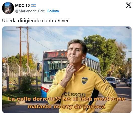 También fue tendencia la figura de Claudio Úbeda, quien consiguió su segundo triunfo consecutivo ante River como entrenador de Boca. Las comparaciones con ciclos anteriores y la continuidad del invicto xeneize en el campeonato también circularon en memes. El estado del césped del Monumental resultó otro blanco frecuente: el Arenazo figuró como trending topic.