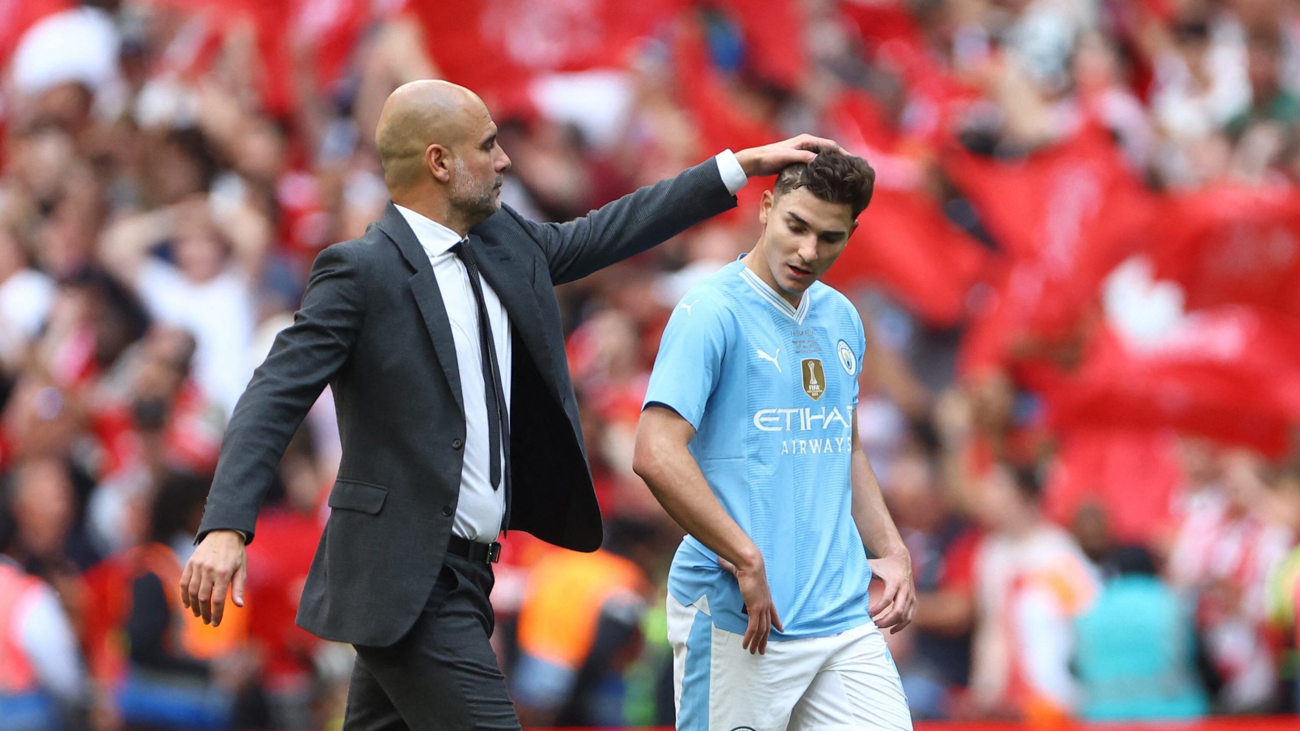 Pep Guardiola se lamentó por la salida de Julián Álvarez (REUTERS/Hannah Mckay)