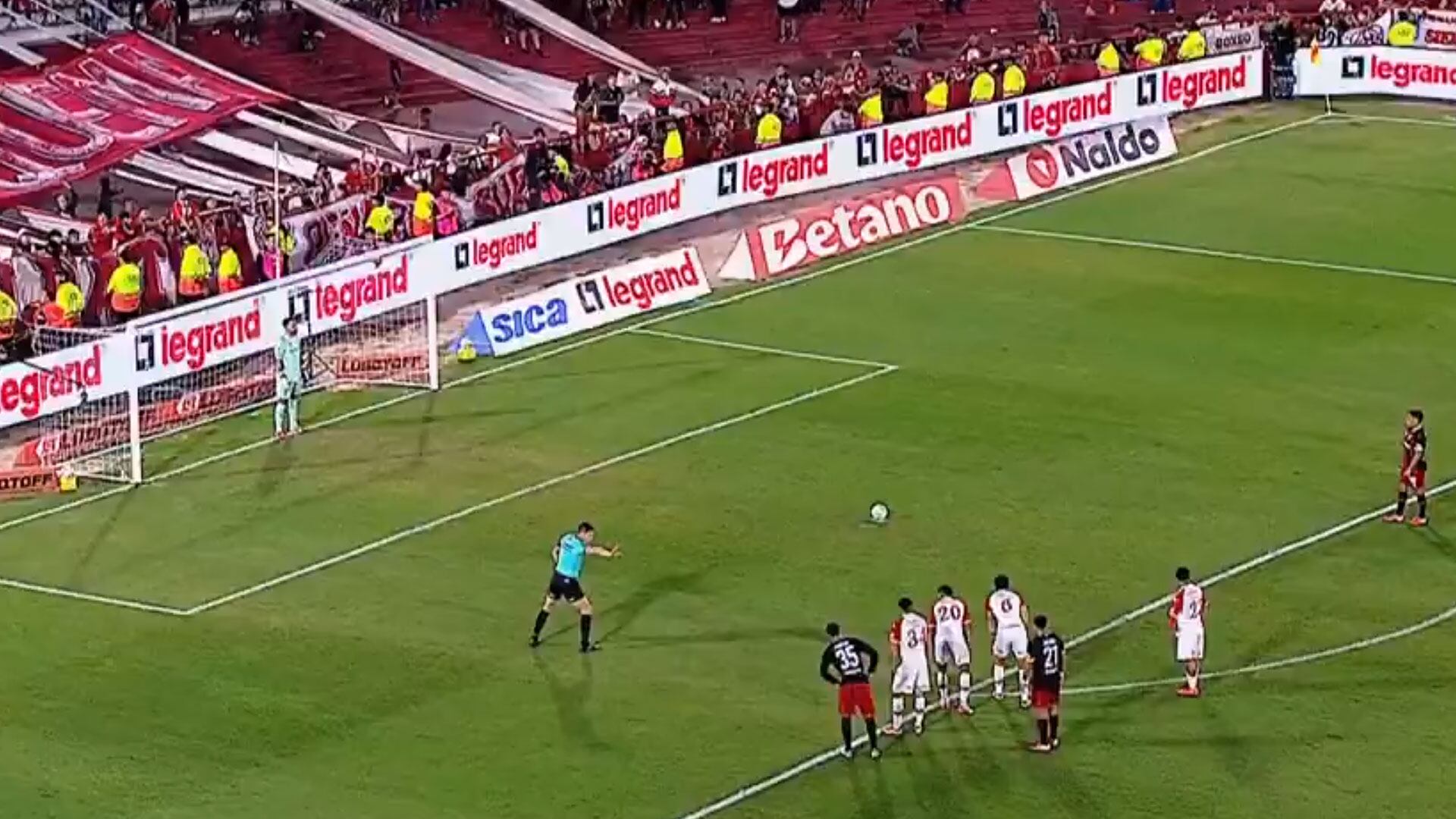 Sin haber tocado ningún balón previo, el número 10 de River fue directo hacia el punto penal para intentar poner el 2-1 y devolverle la ventaja a su equipo. Juanfer tomó unos pasos de carrera, miró hacia el palo izquierdo de Hernán Galíndez y remató. Sin embargo, el arquero de la selección ecuatoriano le adivinó la intención y le tapó el disparo. En el rebote, Quintero intentó definir de cabeza, pero lo hizo de manera defectuosa, por lo que el guardameta le volvió a negar el gol.