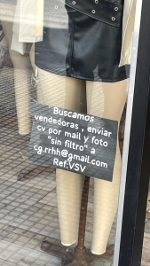 Un conocido local de ropa de Tucumán puso un particular cartel en uno de sus maniquíes y el detalle llamó la atención de una joven que lo hizo público en las redes sociales: «Buscamos vendedoras. Enviar cv por mail y FOTO SIN FILTRO a [email protected]. Ref: VSV