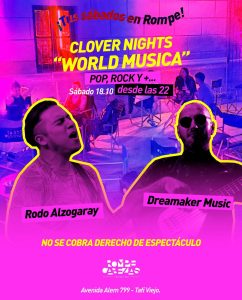 Rompecabezas Cocktail Bar vuelve a encender sus noches de sábado con una propuesta imperdible para los amantes del pop, el rock y los sonidos del mundo. Este sábado 18 de octubre, desde las 22 horas, el bar ubicado en Avenida Alem 799, Tafí Viejo, recibirá una nueva edición de Clover Nights “World Musica”, una velada en la que se fusionarán distintos estilos y ritmos.