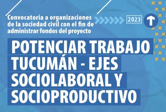 El Gobierno de la provincia, mediante el Ministerio de Desarrollo Social, convoca a organizaciones de la sociedad civil que quieran administrar fondos del programa “Potenciar Trabajo Tucumán – Ejes Sociolaboral y Socioproductivo”.
