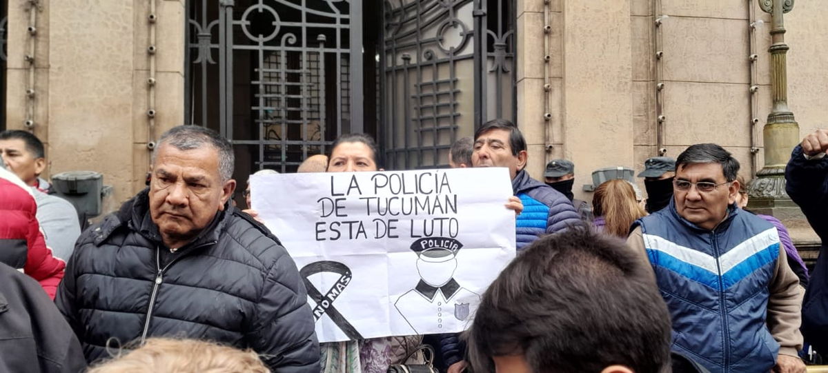 En el caso puntual con los crímenes de los uniformados Ramón Sánchez y Víctor Emanuel Lazarte, policías retirados se concentraron en las adyacencias de Casa de Gobierno para reclamar por más seguridad. «La policía de Tucumán está de luto«, rezan algunos carteles.