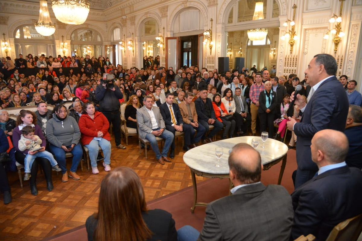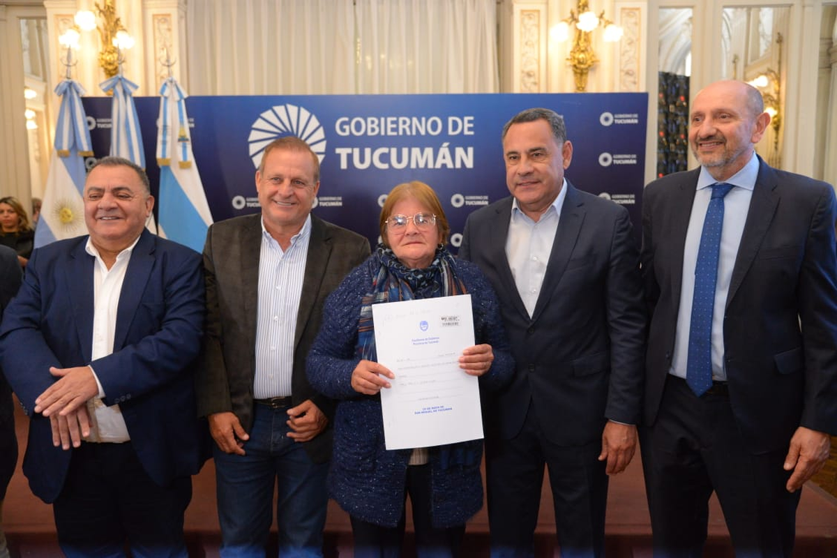 En la mañana de hoy, en representación del gobernador Osvaldo Jaldo, el ministro de Gobierno y Justicia, Regino Amado, entregó escrituras a 170 familias de distintos barrios de San Miguel de Tucumán, en el Salón Blanco.