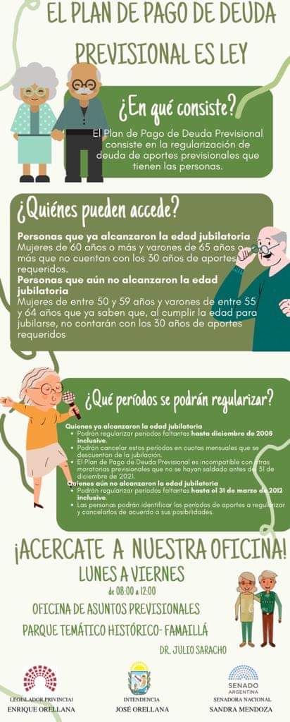 Ademas podes informarte sobre el nuevo plan de pago de deuda previsional que se realizan en las oficinas de la Replica del Cabildo de esta Ciudad.