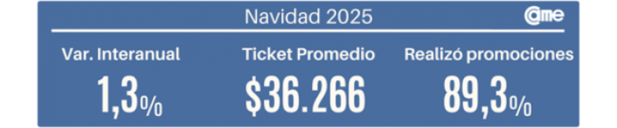 Las ventas navideñas en los comercios minoristas pymes subieron 1,3% frente al año pasado, a precios constantes. La Navidad 2025 se caracterizó por una alta implementación de acciones comerciales, alcanzando al 89,3% de los establecimientos.