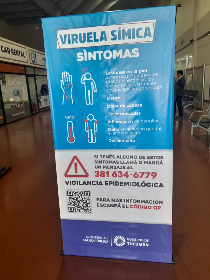 En este sentido, agregó: «Queremos en Tucumán tener activo un protocolo para que una persona que ingrese a través de un vuelo con síntomas compatibles como fiebre alta, dolor de cuerpo y vesículas, tenga la posibilidad de que el personal del aeropuerto lo pueda visualizar espontáneamente. Por eso ofrecemos un número de teléfono de Vigilancia Epidemiológica para que se comuniquen con nosotros y tengan al paciente en aislamiento hasta que llegue personal del 107 para un hisopado».