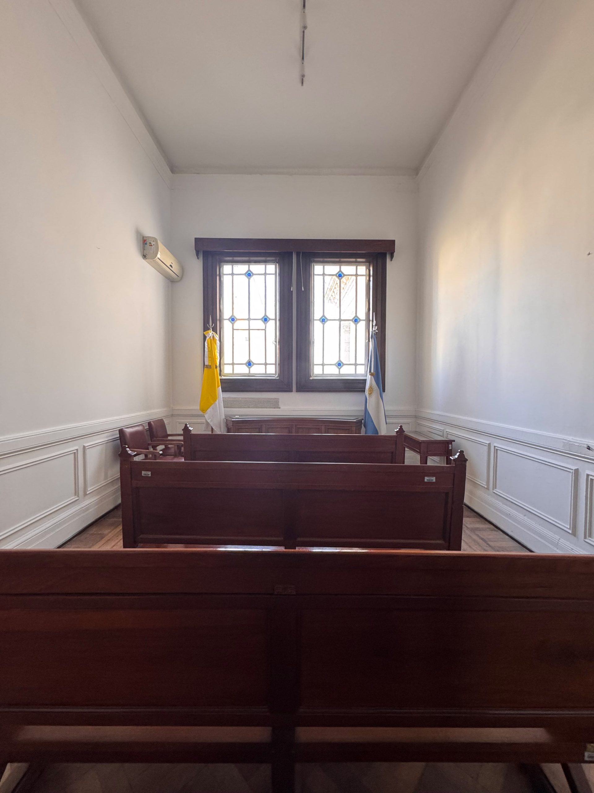 Como consta en la foto, se dispusieron tres bancos idénticos a los que suele verse en algunos pasillos de la Cámara alta y se ubicaron enfrentados a un mini estrado. A los lados del mismo se colocaron dos banderas: la argentina y una amarilla y blanca similar a las que utiliza la iglesia católica. Allí podrán asistir los senadores que profesen dicha religión para reflexionar, orar y pedir por el tratamiento de leyes. En el ex despacho de Kueider.