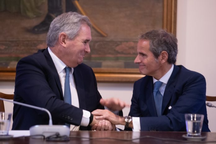 Allí, acompañado por el actual director general del Organismo Internacional de Energía Atómica (OIEA), el ministro lanzó la campaña con la que acompañará al diplomático en su nuevo desafío.