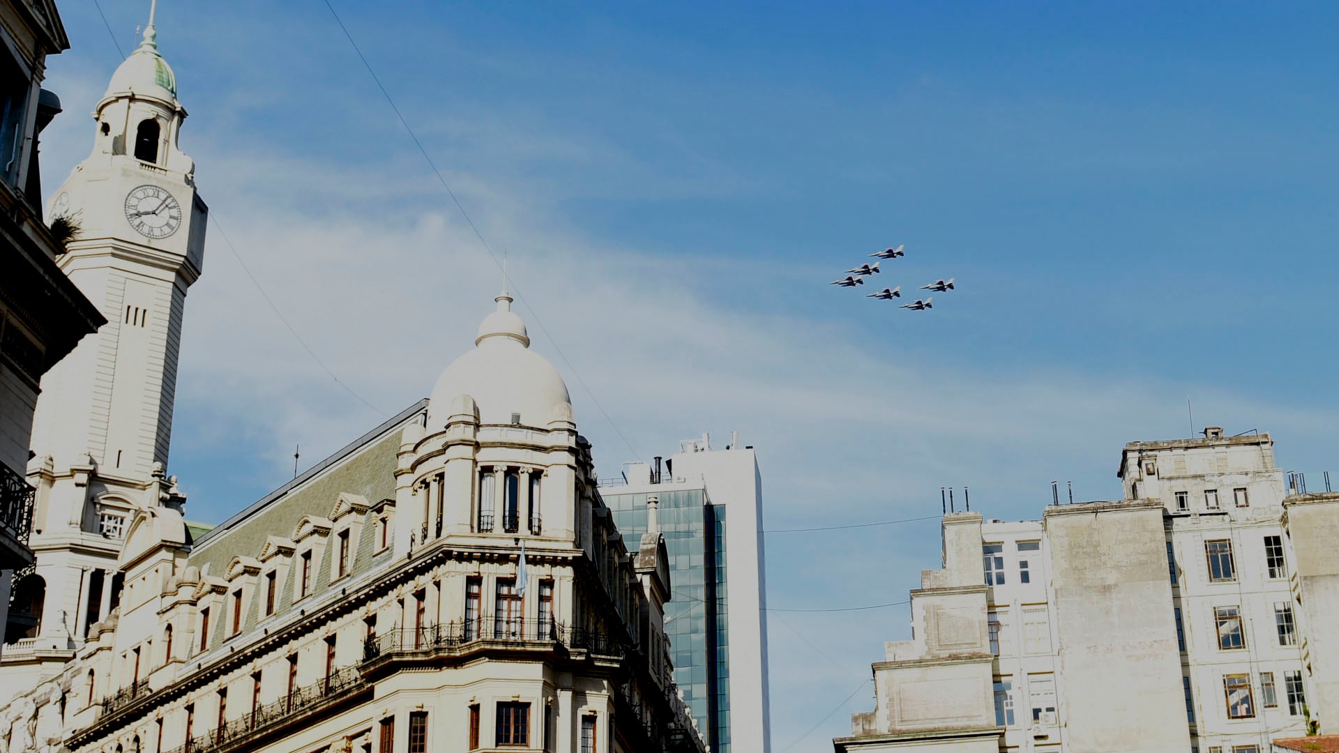 La escuadrilla realizó además pasadas sobre la avenida 9 de Julio y la Costanera, sorprendiendo a quienes intentaban adivinar la trayectoria de los aviones.
