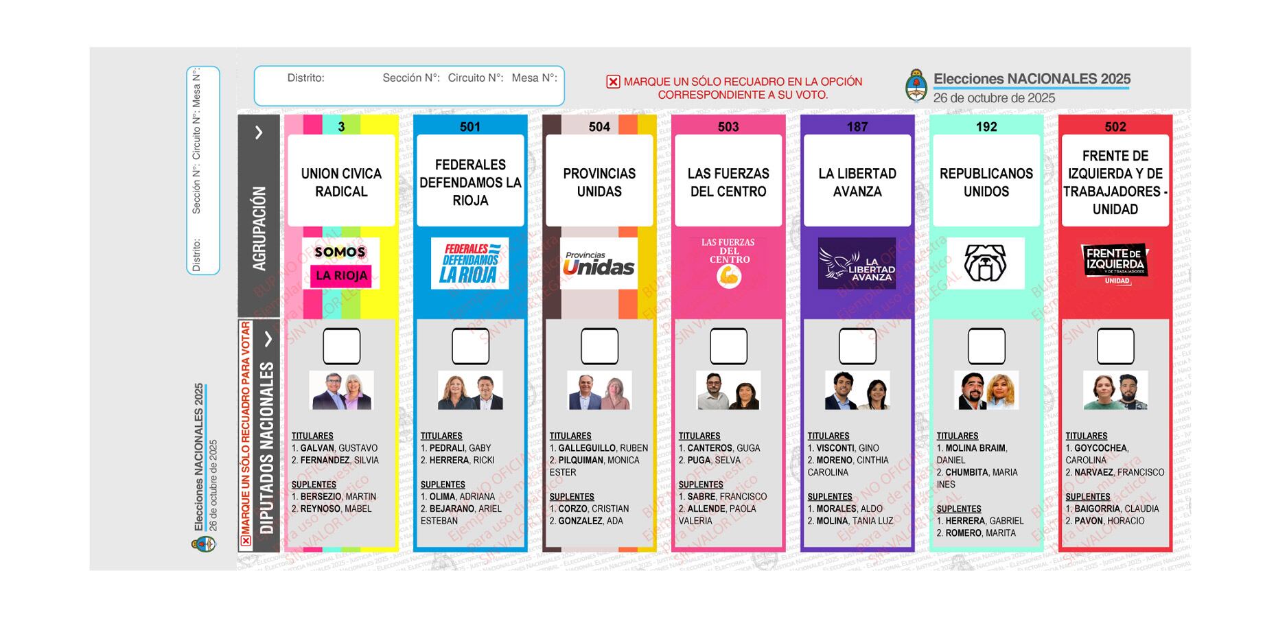 Boletas Elecciones 2025 - Boleta única de papel (BUP) + La rioja