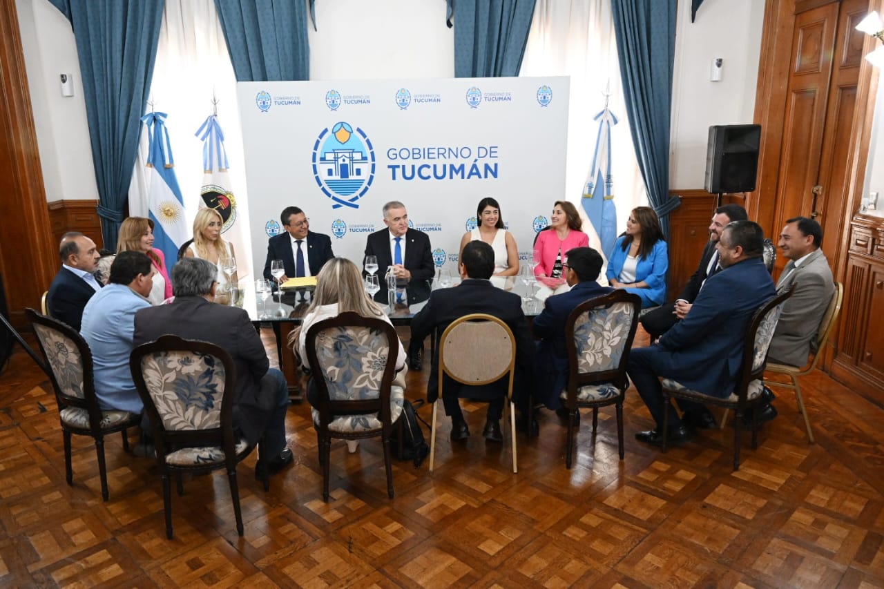 El gobernador Osvaldo Jaldo convocó este martes a intendentes a una reunión en Casa de Gobierno, acompañado por el ministro del Interior, Darío Monteros. Participaron Graciela Gutiérrez (Alderetes), Jorge Leal (Burruyacú), Gimena Mansilla (Aguilares), Gonzalo Monteros (Banda del Río Sali), Enrique Orellana (Famaillá), Raquel Graneros (Graneros), Francisco Serra (Monteros), Marta Albarracín (Lules), Marta Najar (Las Talitas), Alejandra Rodríguez (Tafi Viejo), Francisco Caliva (Tafi del Valle), Antonio Moreno (Trancas), Elvio Salazar (Simoca) y el interventor de Alberdi, Guillermo Norry.