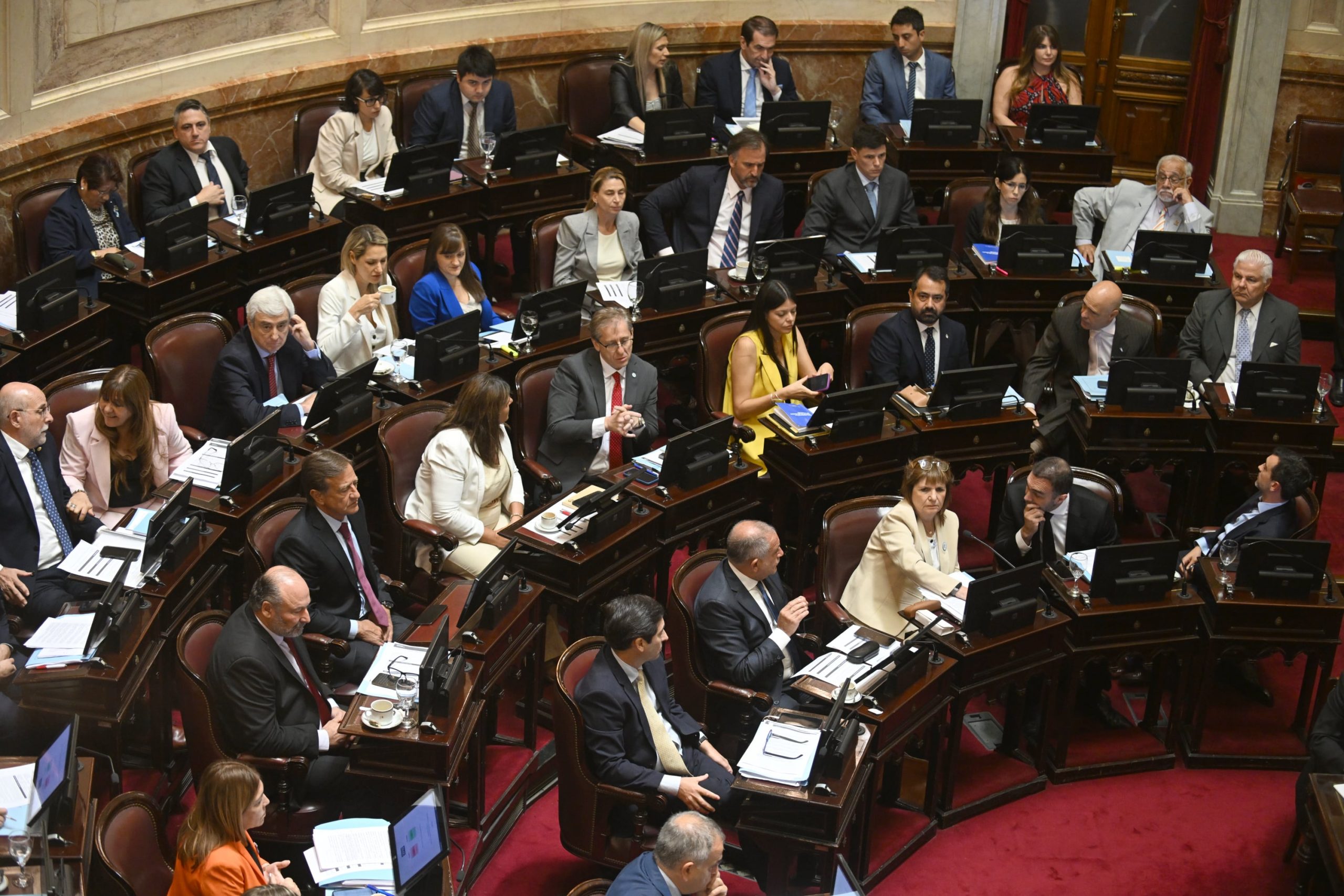 El interbloque libertario junto a bancadas dialoguistas en el recinto del Senado (Maximiliano Luna)